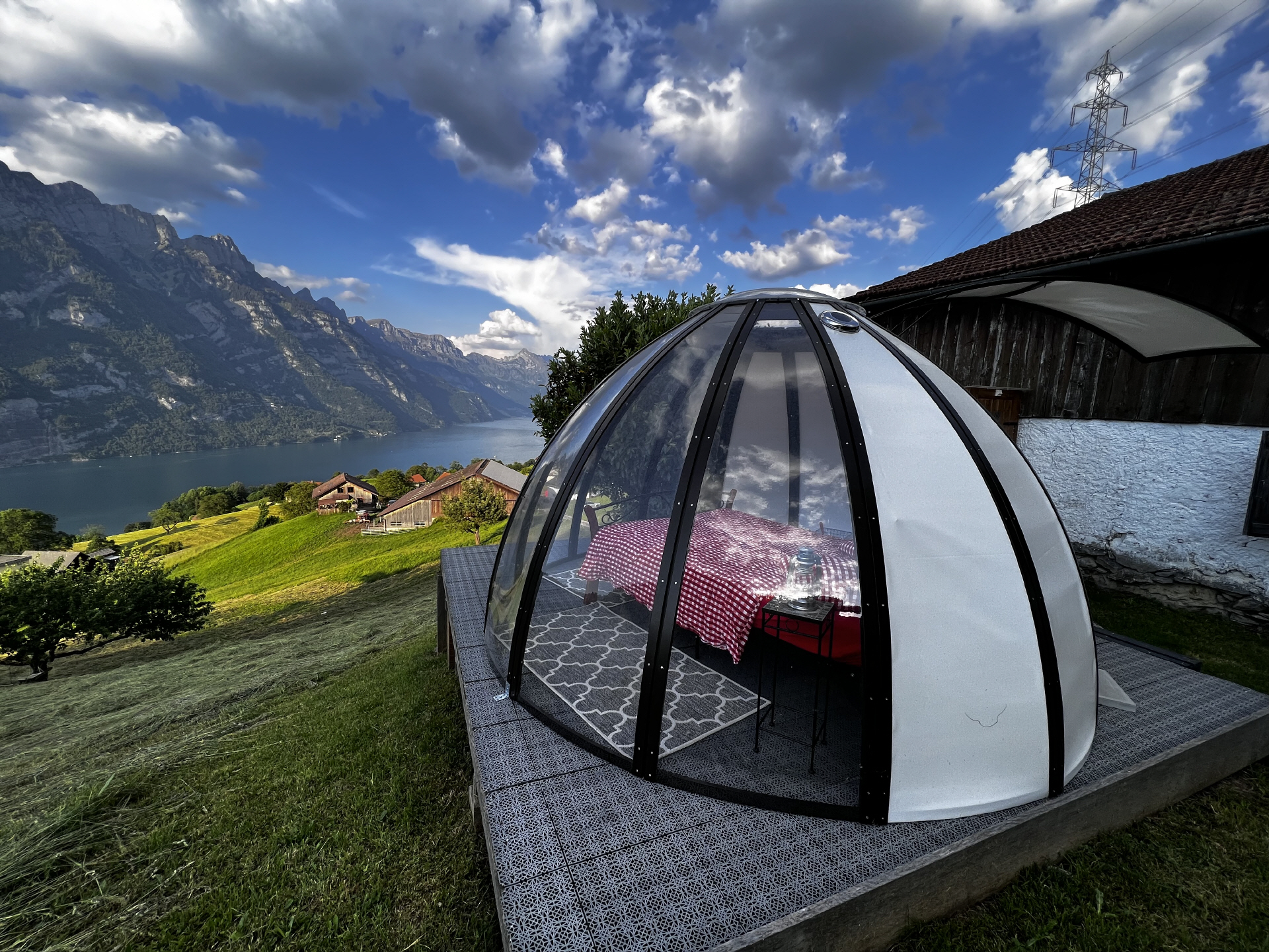 Die kuschlige Bubble-Suite liegt in Obstalden im idyllischen Weiler "Walenguflen" hoch über dem Walensee. Von hier aus haben Sie die verschiedensten Möglichkeiten für Aktivitäten rund um den See und in den Bergen.